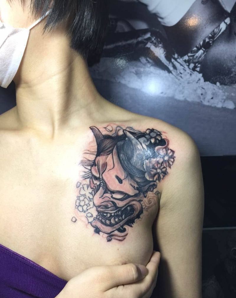 • 女性大花胸纹身_43张霸气漂亮的女性大花胸纹身图案作品