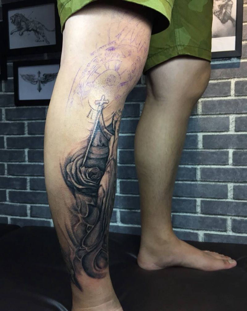 当前位置: 首页 >上海市纹身店-哆啦刺青纹身图案>未完待续纹身图片_成品腿部写实欧美人物纹身图案