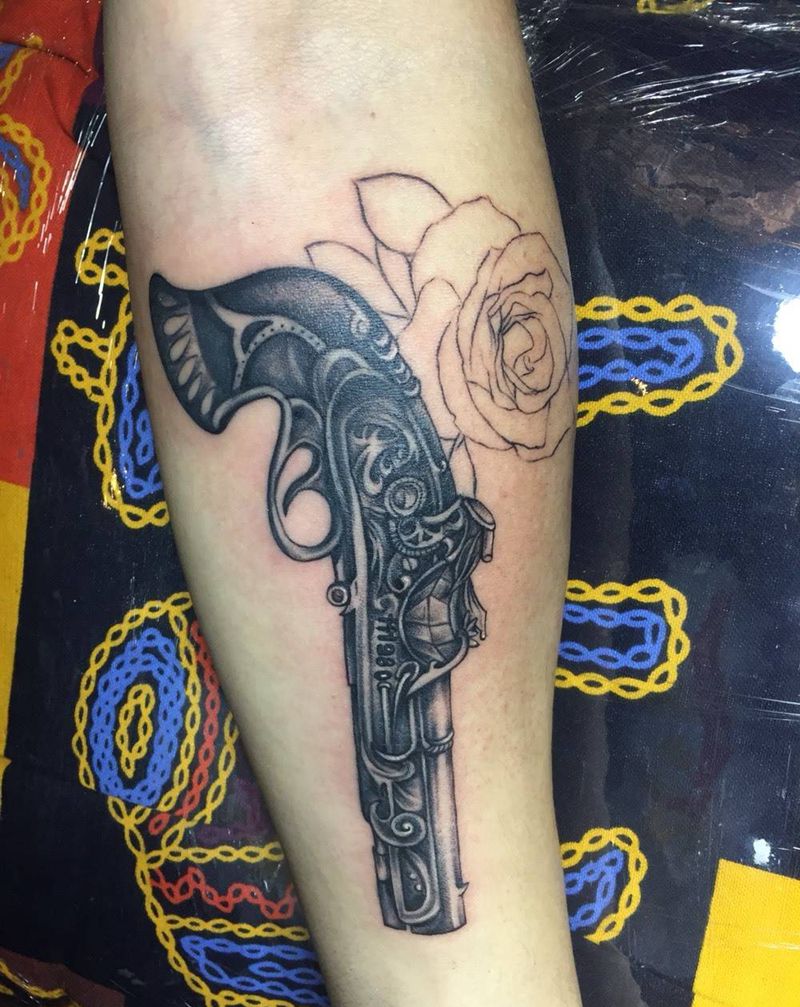 当前位置: 首页 >上海市纹身店-哆啦刺青纹身图案>枪花未完纹身图片
