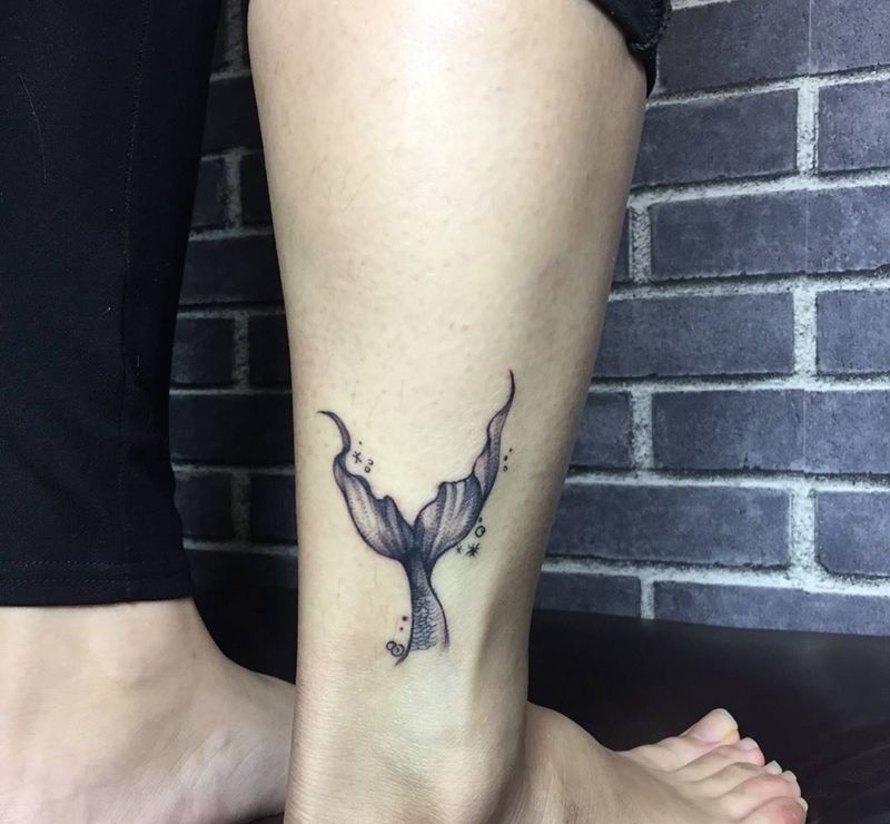 当前位置: 首页 >上海市纹身店-哆啦刺青纹身图案>我是一只游泳的鱼啊纹身图片_成品腿部欧美清新写实动物纹身图案