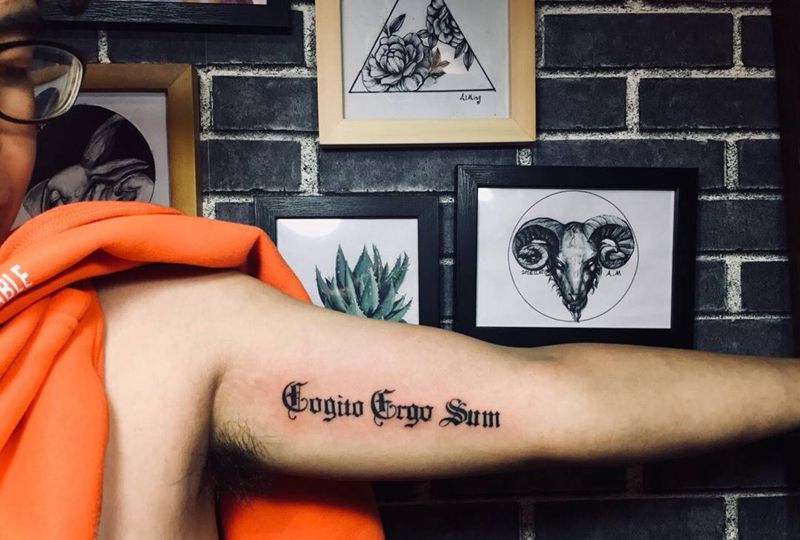 当前位置: 首页 >上海市纹身店-哆啦刺青纹身图案>我思故我在纹身图片_成品手臂欧美字符纹身图案