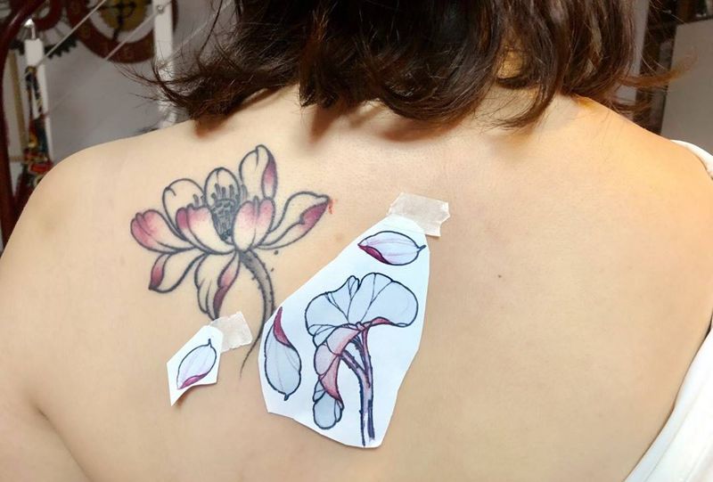 当前位置: 首页 >上海市纹身店-哆啦刺青纹身图案>改荷花小清新纹身图片_成品背部传统清新植物原创纹身图案