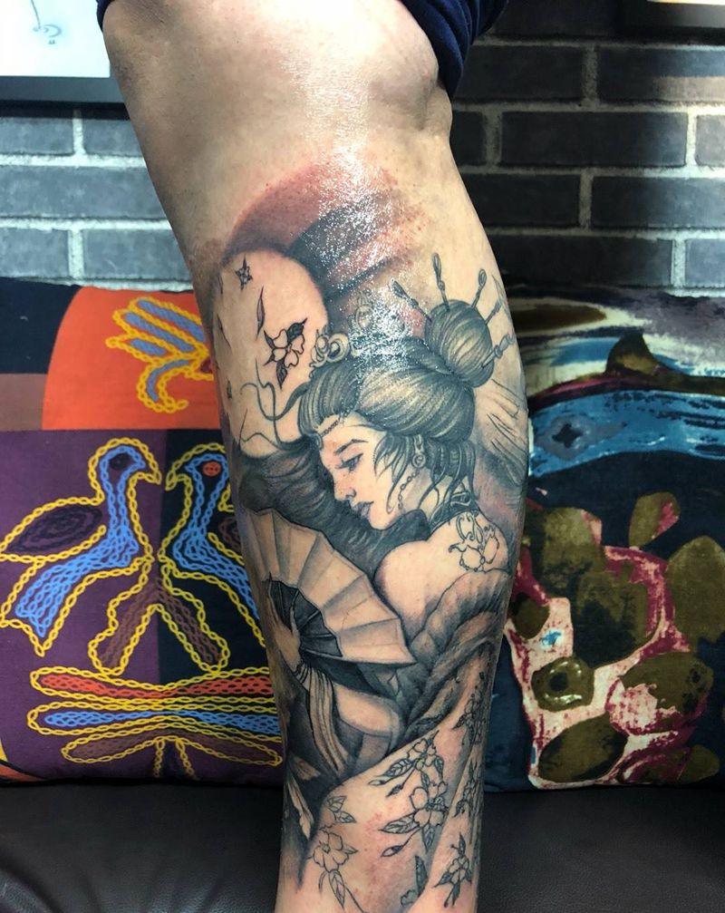 当前位置: 首页 >上海市纹身店-哆啦刺青纹身图案>艺妓纹身图片_成品腿部写实传统肖像清新人物原创纹身图案