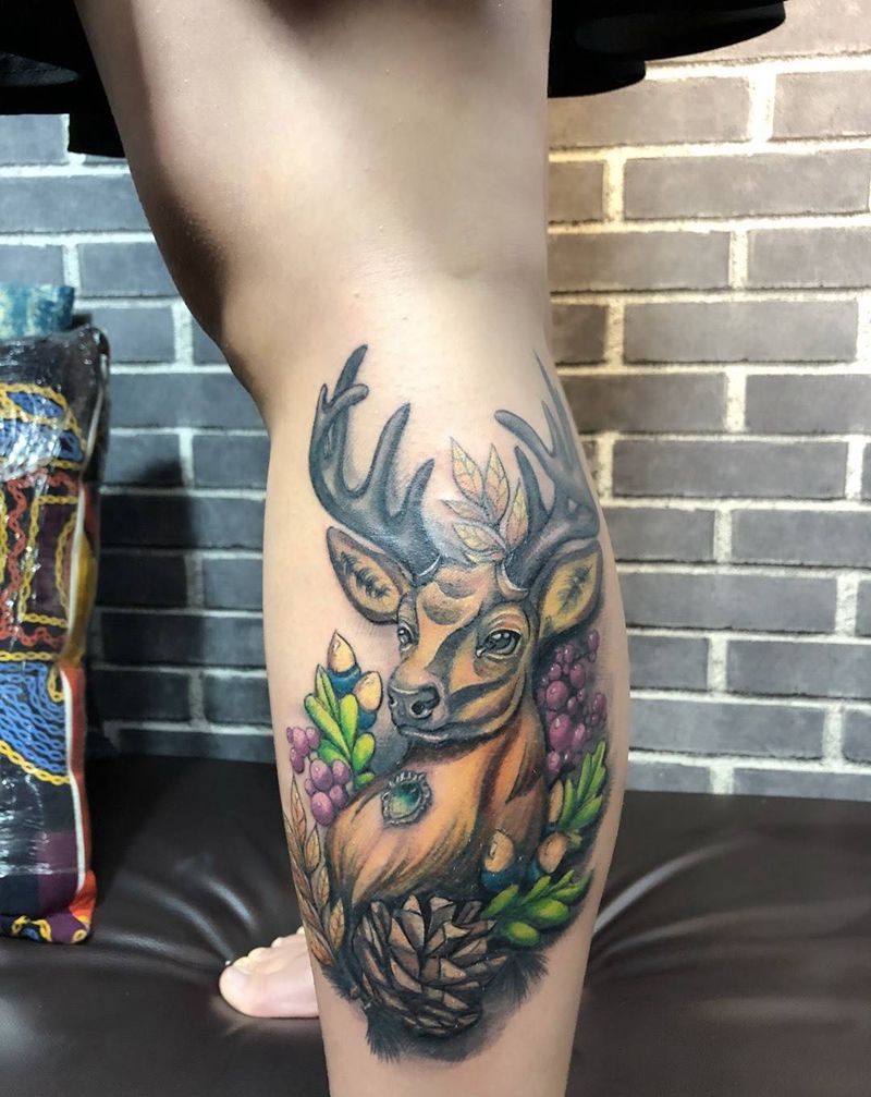 • T网红王老大花腿龙纹身图片_腿部新传统纹身图案