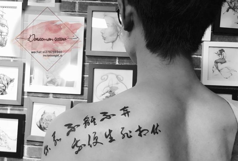 当前位置: 首页 >上海市纹身店-哆啦刺青纹身图案>你若不离不弃纹身图片_成品肩部欧美清新字符纹身图案
