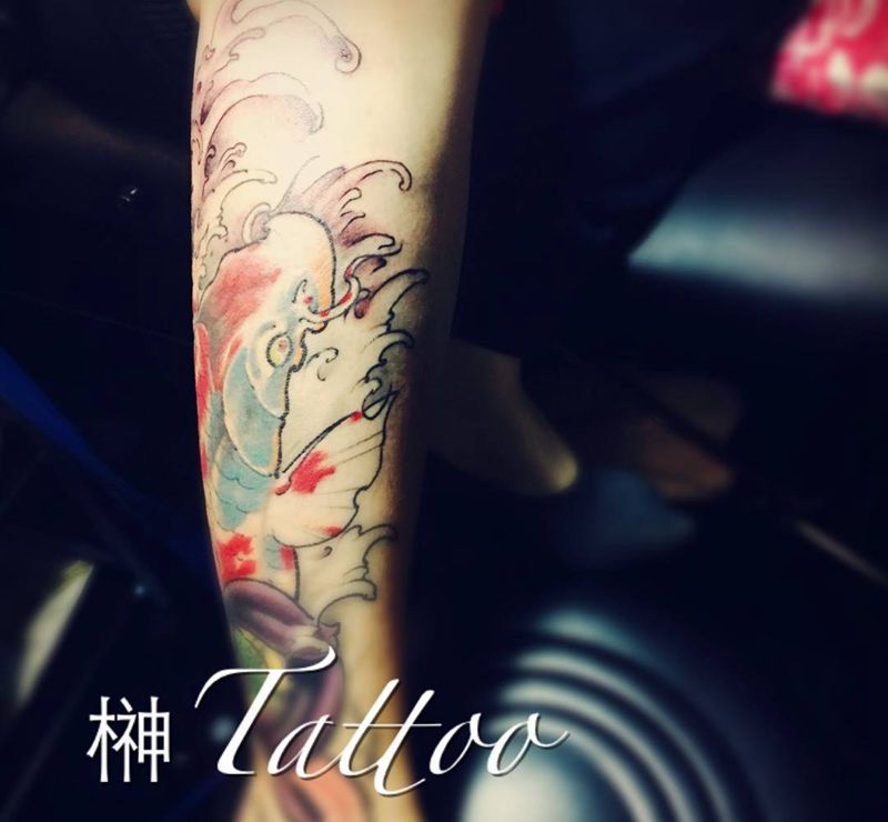 当前位置: 首页 >上海市纹身店-BLACK INK 纹身图案>鲤纹身图片_成品腿部传统原创纹身图案