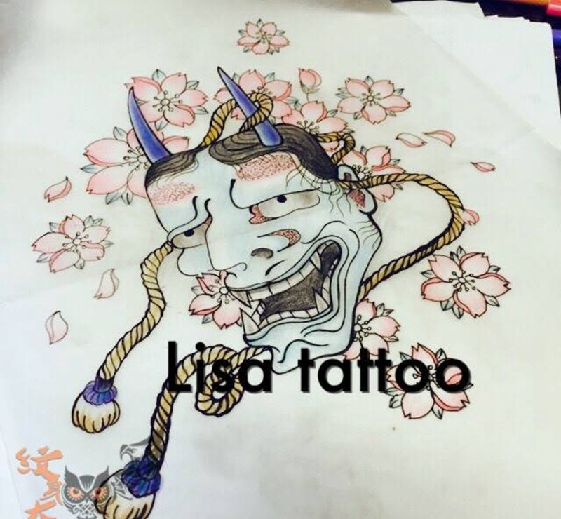 手稿 般若纹身图片_手稿颈部腰部背部手臂腿部传统鬼神纹身图案