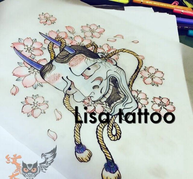 手稿 般若纹身图片_手稿颈部腰部背部手臂腿部传统鬼神纹身图案