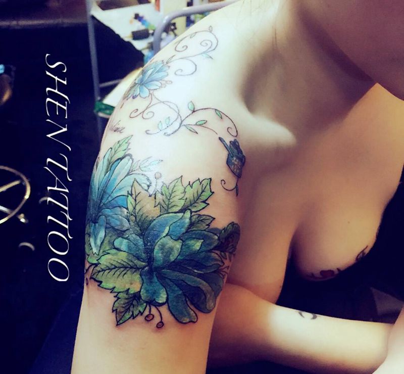 当前位置: 首页 >上海市纹身店-BLACK INK 纹身图案>兰纹身图片_成品肩部手臂清新原创纹身图案