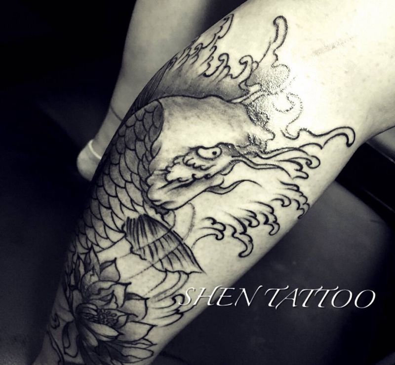 当前位置: 首页 >上海市纹身店-BLACK INK 纹身图案>鲤鱼 未完成纹身图片_成品腿部传统动物纹身图案