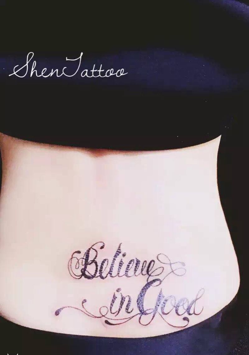 • T关于私处得爱!纹身图片_成品腹部清新字符图腾纹身图案