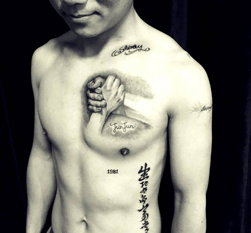 父亲的爱纹身图片_成品胸部欧美纹身图案