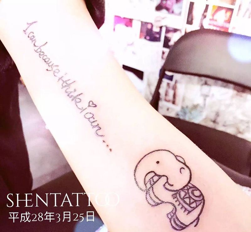 手绘设计文字+可爱小象纹身图片_成品手臂欧美清新动物原创纹身图案