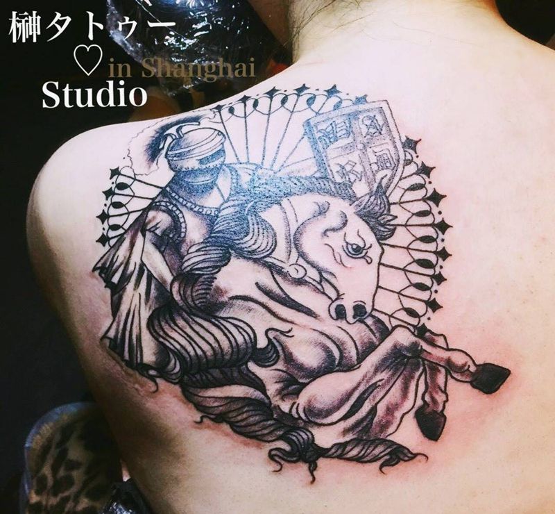 • 纹身吧推荐的披肩图腾半胛纹身图案作品展示