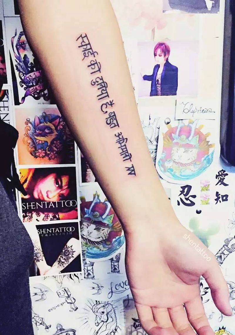 “天上天下,唯我独尊”纹身图片_成品手臂欧美字符原创纹身图案