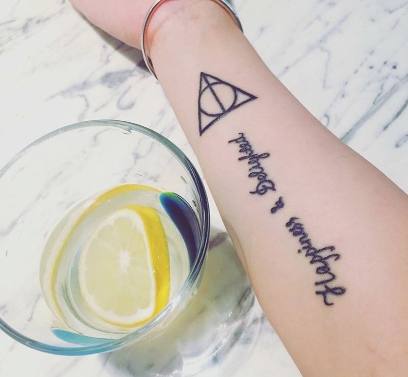 当前位置: 首页 >上海市纹身店-BLACK INK 纹身图案>文字买家秀纹身图片_成品手臂清新原创字符几何纹身图案