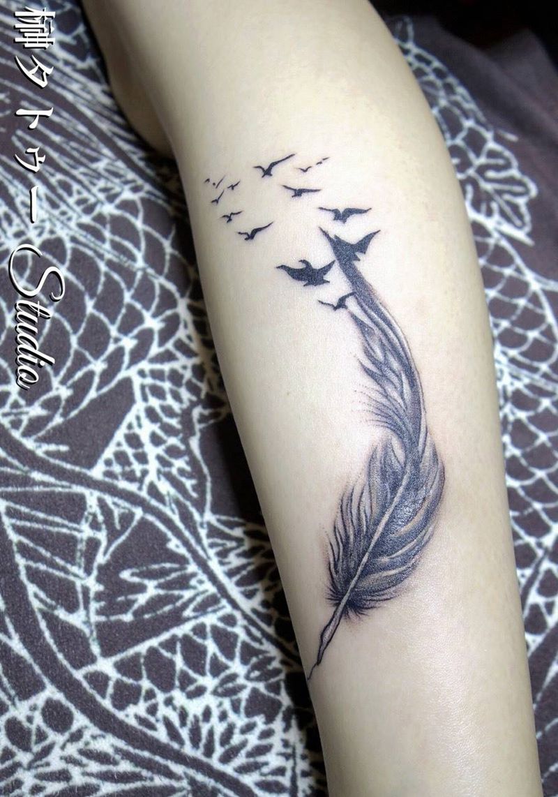 羽毛 疤痕遮盖纹身图片_成品腿部欧美清新原创动物纹身图案