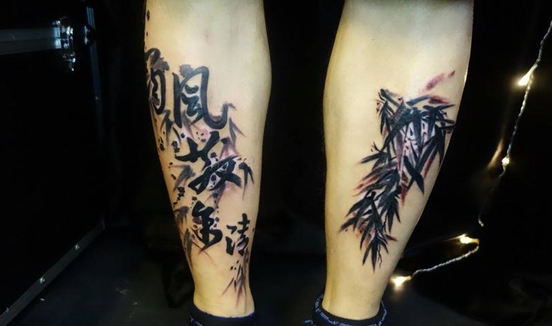 当前位置: 首页 >上海市纹身店-BLACK INK 纹身图案>水墨风格 疤痕遮盖纹身图片_成品腿部国画原创植物字符纹身图案