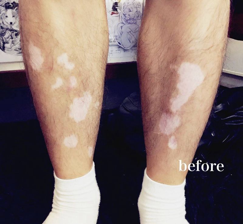 水墨风格 疤痕遮盖纹身图片_成品腿部国画原创植物字符纹身图案