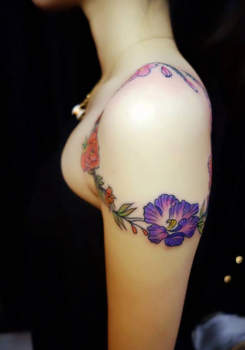 • 女性大花胸纹身_43张霸气漂亮的女性大花胸纹身图案作品