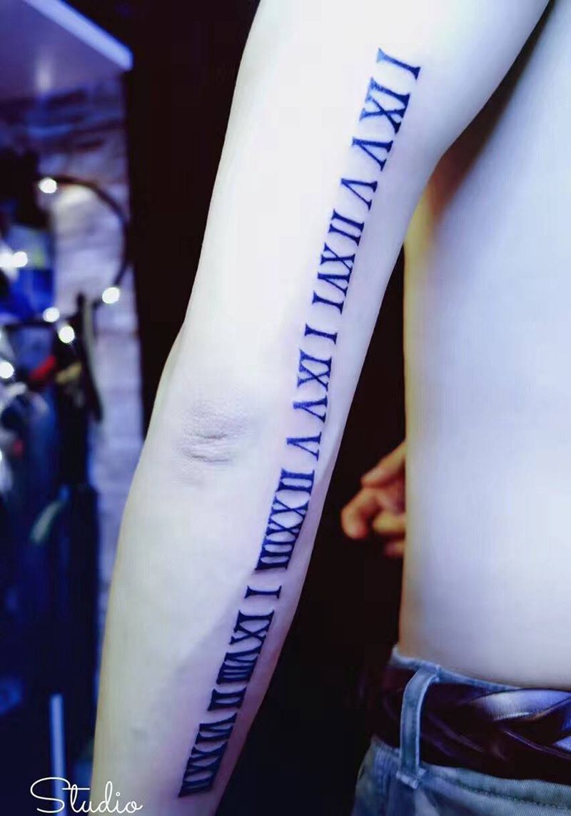 当前位置: 首页 >上海市纹身店-BLACK INK 纹身图案>生日 罗马数字纹身图片_成品手臂欧美字符原创纹身图案