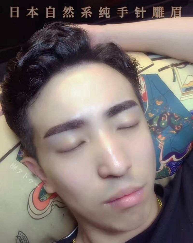 日本手针雕眉 男士眉纹身图片_成品人物日本雕眉纹身图案