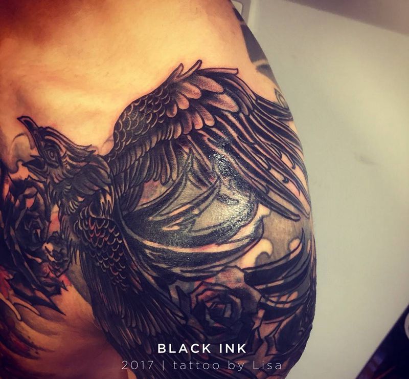 当前位置: 首页 >上海市纹身店-BLACK INK 纹身图案>遮盖(未完成)纹身图片_成品手臂胸部背部欧美写实动物图腾原创纹身图案