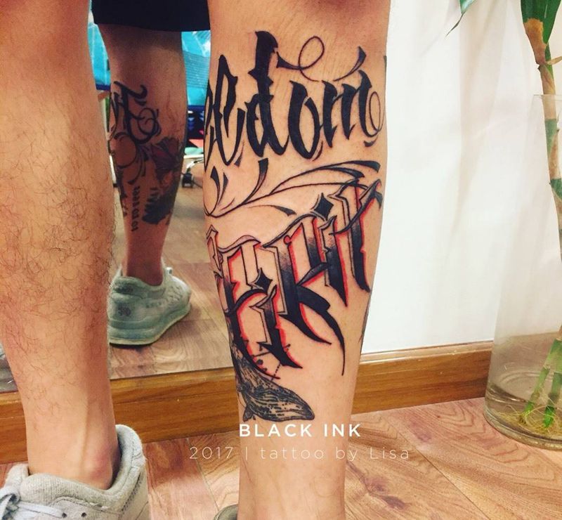 当前位置: 首页 >上海市纹身店-BLACK INK 纹身图案>小腿其卡诺纹身图片_成品腿部欧美字符原创纹身图案
