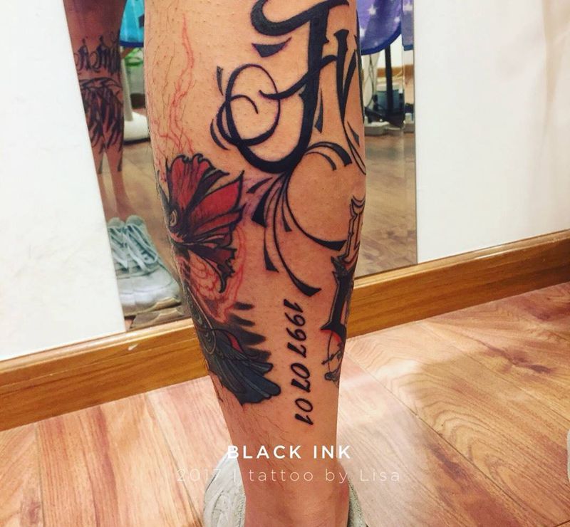 当前位置: 首页 >上海市纹身店-BLACK INK 纹身图案>小腿其卡诺纹身图片_成品腿部欧美字符原创纹身图案
