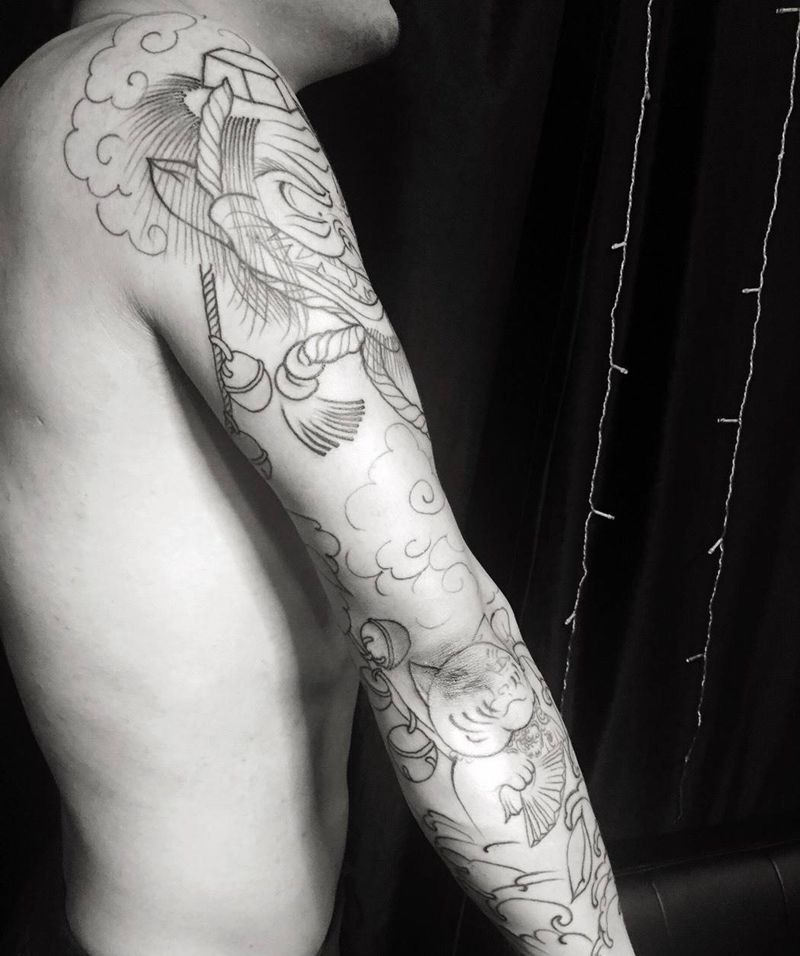 当前位置: 首页 >上海市纹身店-BLACK INK 纹身图案>百鬼夜行 整臂纹身图片_成品手臂传统鬼神原创纹身图案