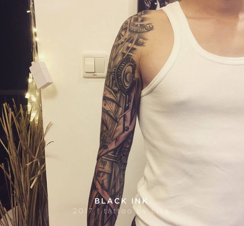 当前位置: 首页 >上海市纹身店-BLACK INK 纹身图案>机械臂 完成纹身图片_成品手臂欧美写实原创静物纹身图案