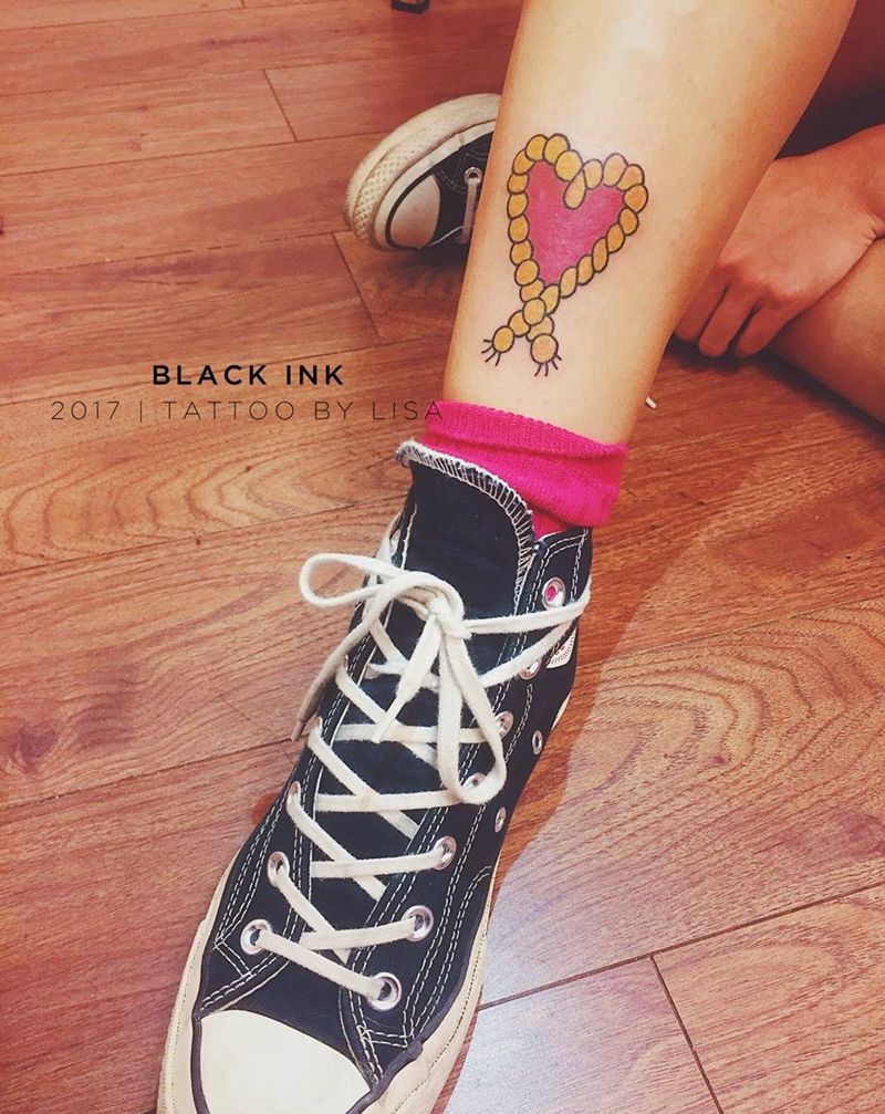 当前位置: 首页 >上海市纹身店-BLACK INK 纹身图案>小腿爱心纹身图片_成品腿部欧美清新原创几何纹身图案