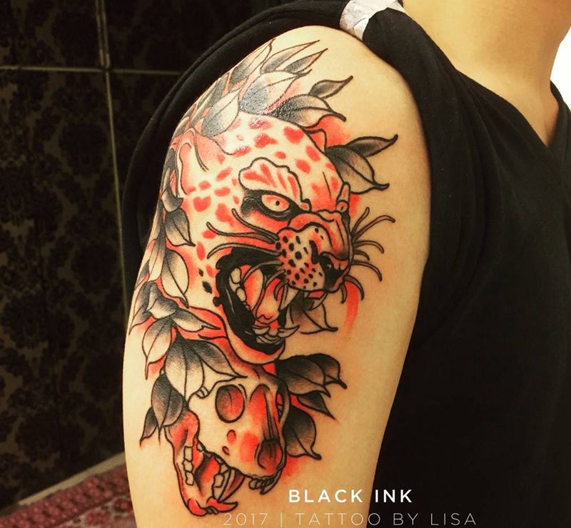 当前位置: 首页 >上海市纹身店-BLACK INK 纹身图案>大臂豹子纹身图片_成品手臂欧美动物原创植物纹身图案