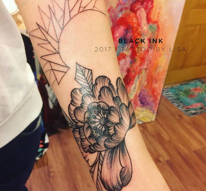 黑臂第一次纹身图片_成品手臂欧美植物图腾原创纹身图案