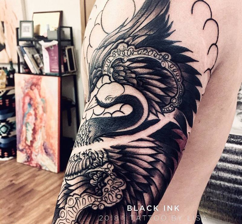 • 纹身吧推荐的披肩图腾半胛纹身图案作品展示