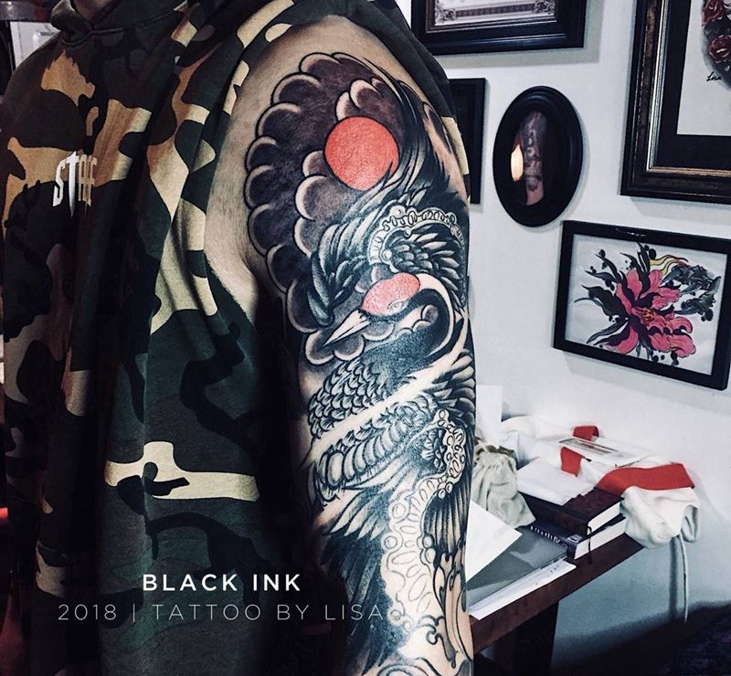 当前位置: 首页 >上海市纹身店-BLACK INK 纹身图案>原创新传统七分臂纹身图片_成品手臂传统动物图腾原创纹身图案