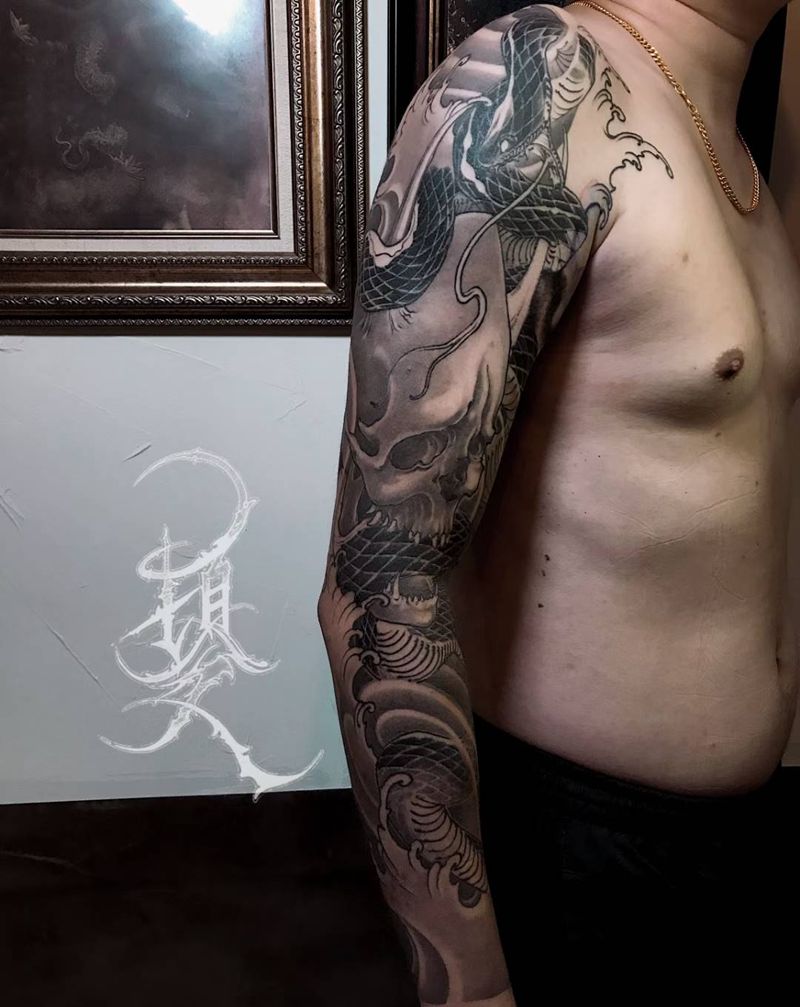 当前位置: 首页 >上海市纹身店-顷久Tattoo纹身图案>骷髅般若缠蛇纹身图片_手臂手部新传统老传统纹身图案