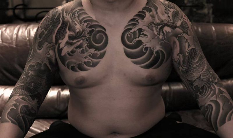 当前位置: 首页 >上海市纹身店-顷久Tattoo纹身图案>双半甲龙纹身图片_胸部手部新传统纹身图案