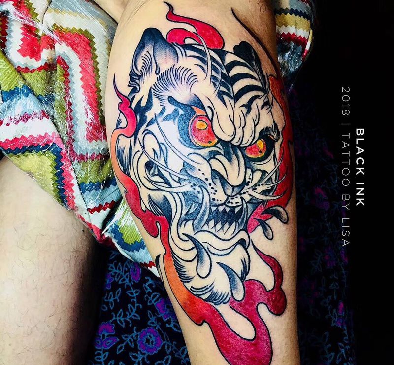 当前位置: 首页 >上海市纹身店-BLACK INK 纹身图案>new school 虎纹身图片_腿部New School纹身图案