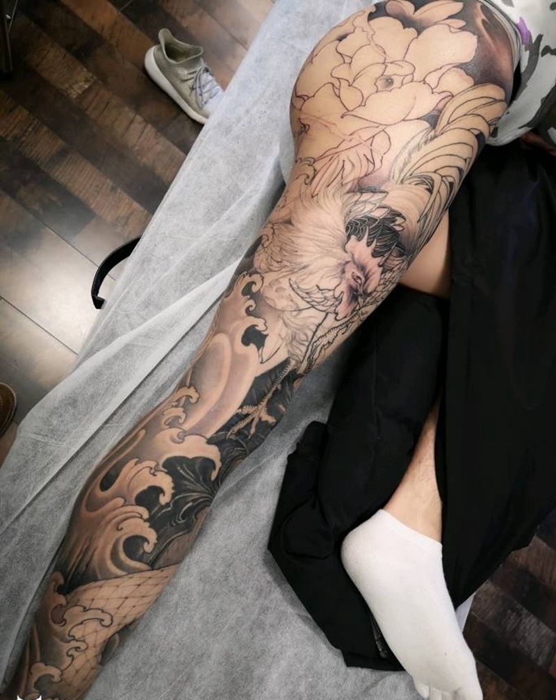 • T网红王老大花腿龙纹身图片_腿部新传统纹身图案