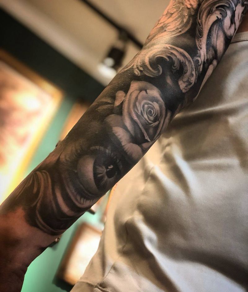 当前位置: 首页 >上海市纹身店-顷久Tattoo纹身图案>素描花臂纹身图片_成品手臂腿部欧美肖像写实人物静物植物纹身图案