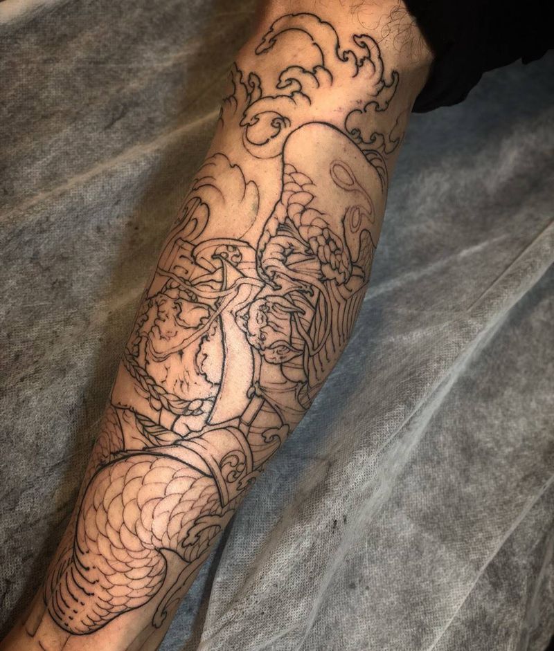 当前位置: 首页 >上海市纹身店-顷久Tattoo纹身图案>骷髅武士蛇纹身图片_成品手臂腿部传统人物鬼神植物动物纹身图案