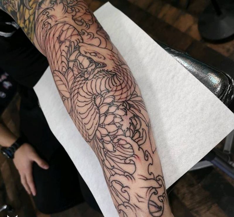 蛇,菊纹身图片_手部手臂新传统纹身图案