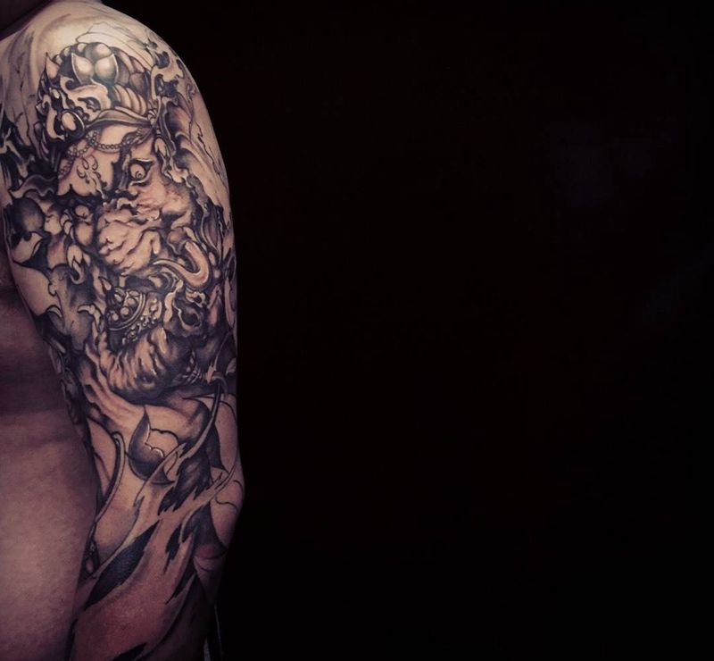 当前位置: 首页 >上海市纹身店-顷久Tattoo纹身图案>象神纹身图片_成品手臂手部传统动物鬼神原创宗教纹身图案