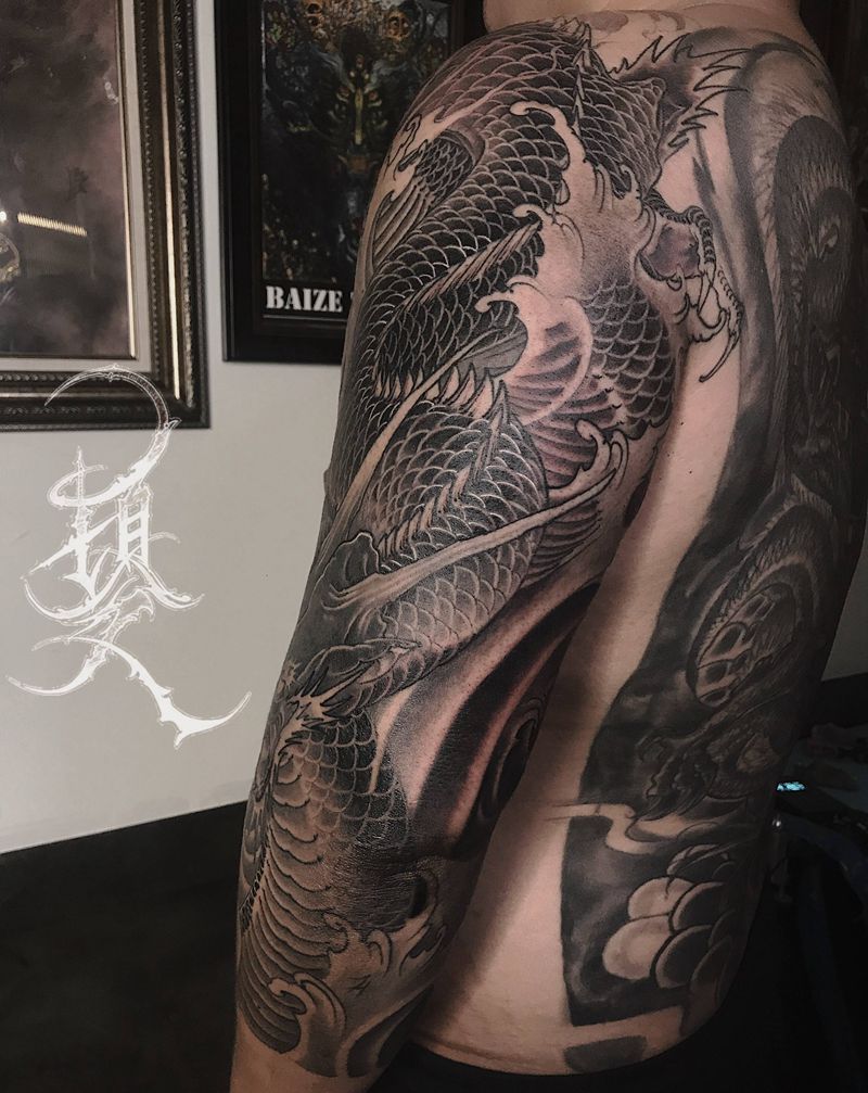 • T云龙九郎纹身图片_背部老传统云龙九郎纹身图案