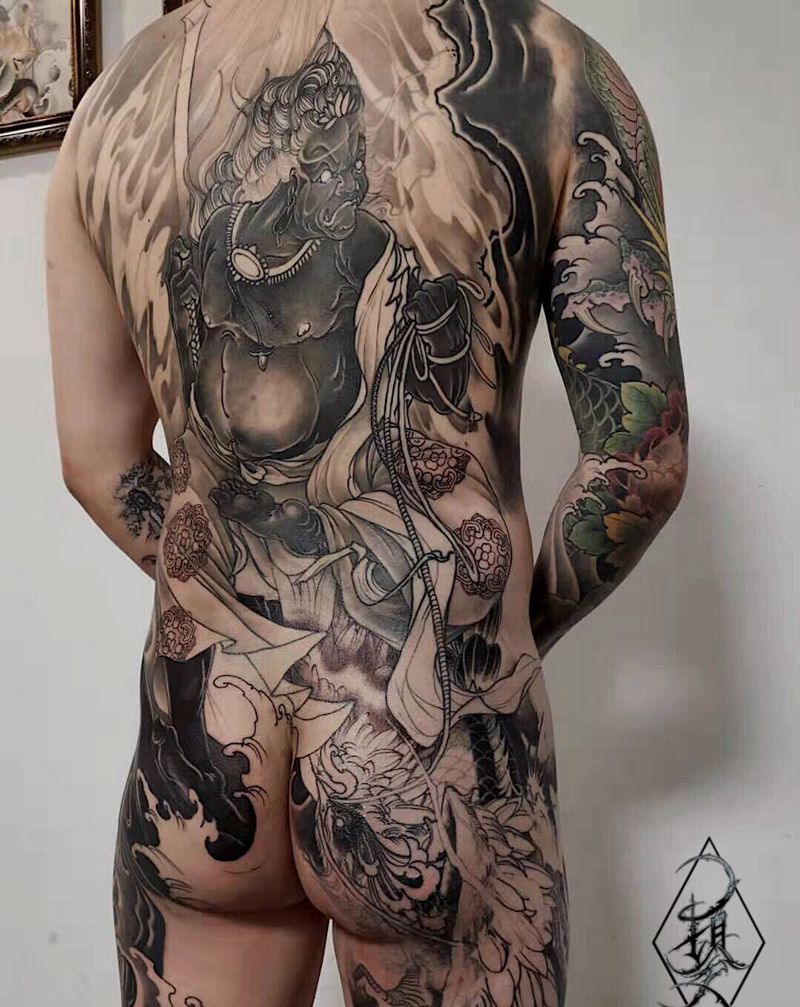曹丰不动明王未完待续纹身图片_背部新传统不动明王纹身图案