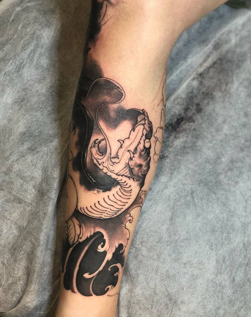 • T网红王老大花腿龙纹身图片_腿部新传统纹身图案