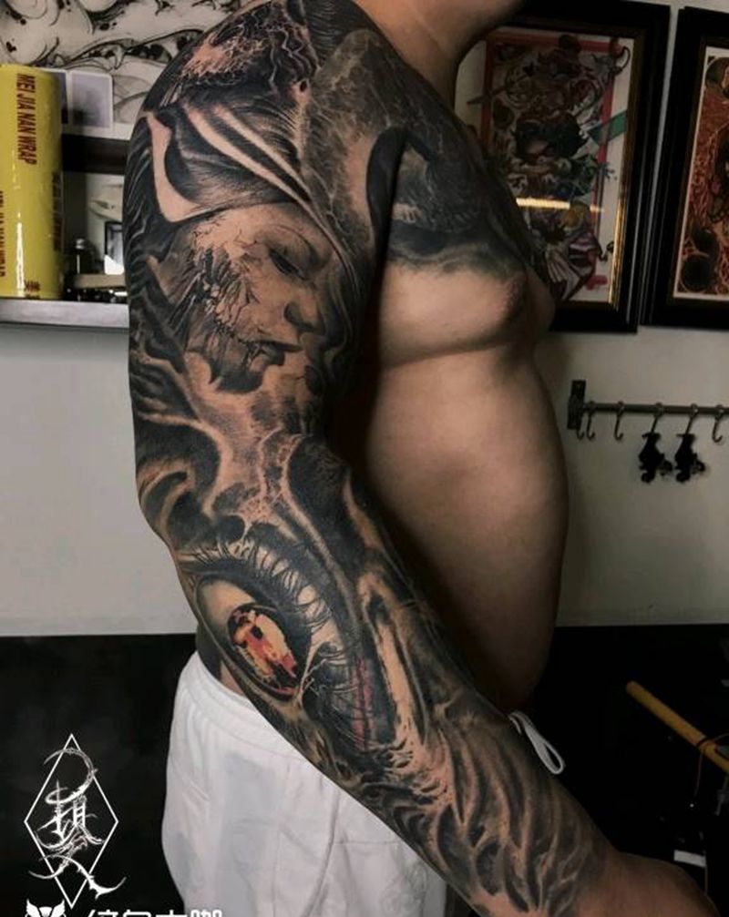 欧美黑灰纹身图片_手臂胸部欧美写实纹身图案