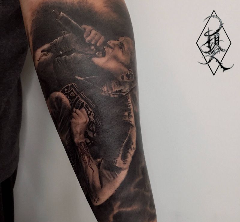 林肯公园欧美写实纹身图片_手臂手部欧美写实纹身图案