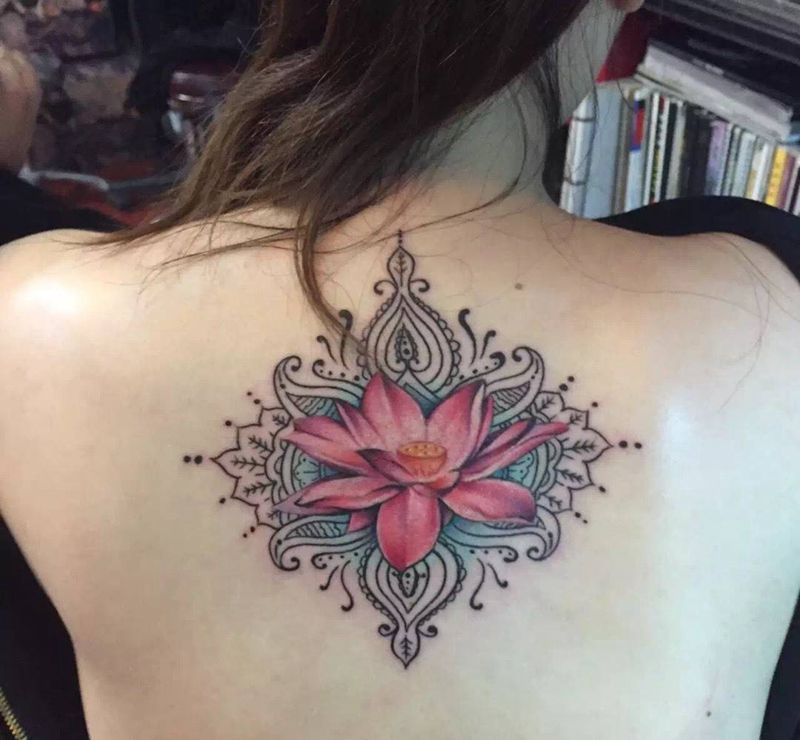 莲花纹身图片_成品背部胸部腿部手臂清新植物静物写实传统纹身图案